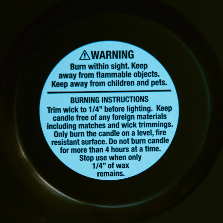 4. Avoid burning your candle for more than 4 hours at a time. Your wick can “mushroom” and create a large and unstable flame. Do not move the candle while it is lit. Do not burn your candle near vents, fans, drafts, or anything flammable. Never leave a burning candle unattended or alone with pets or children.